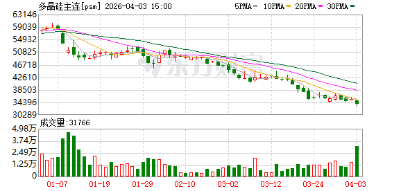 4月3日,多晶硅期价大幅下跌。当日盘中,主力2605合约一度跌超5%、触及33235元/吨,创2025年7月以来新低;截至收盘,该合约报33770元/吨,下跌4.69%。