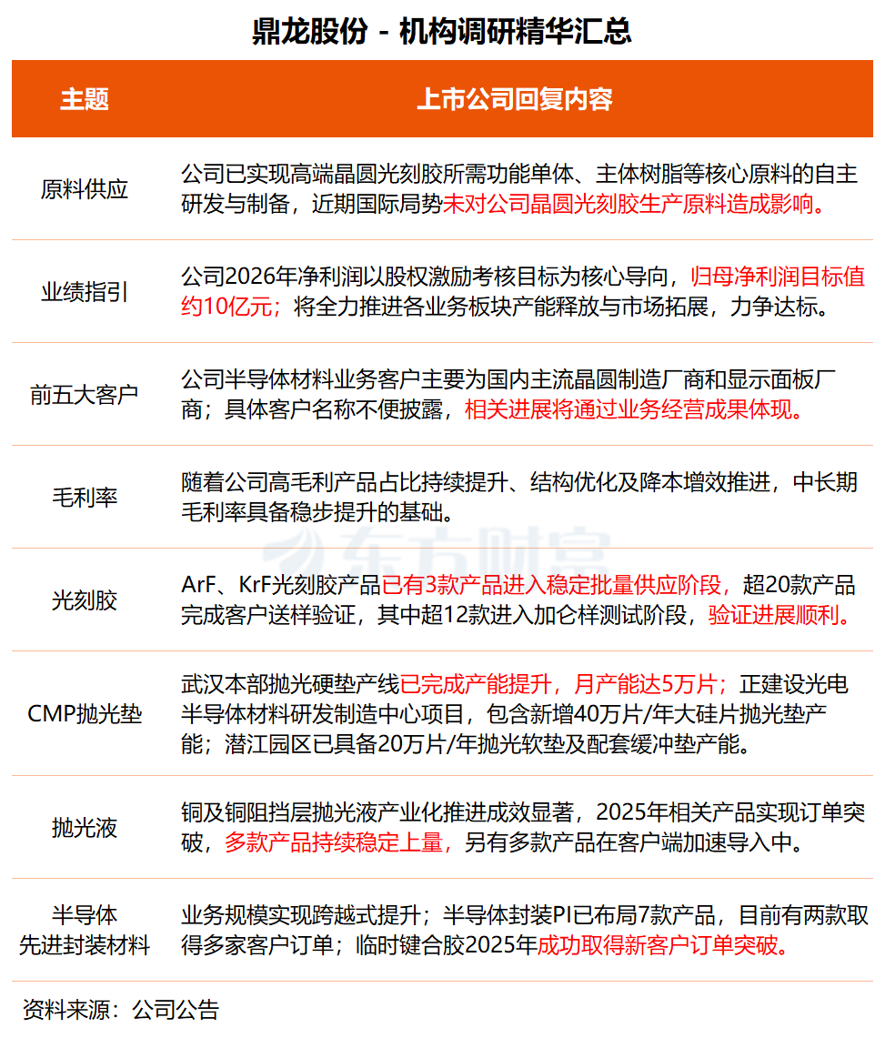 鼎龙股份:已有3款ArF、KrF光刻胶产品进入稳定批量供应阶段