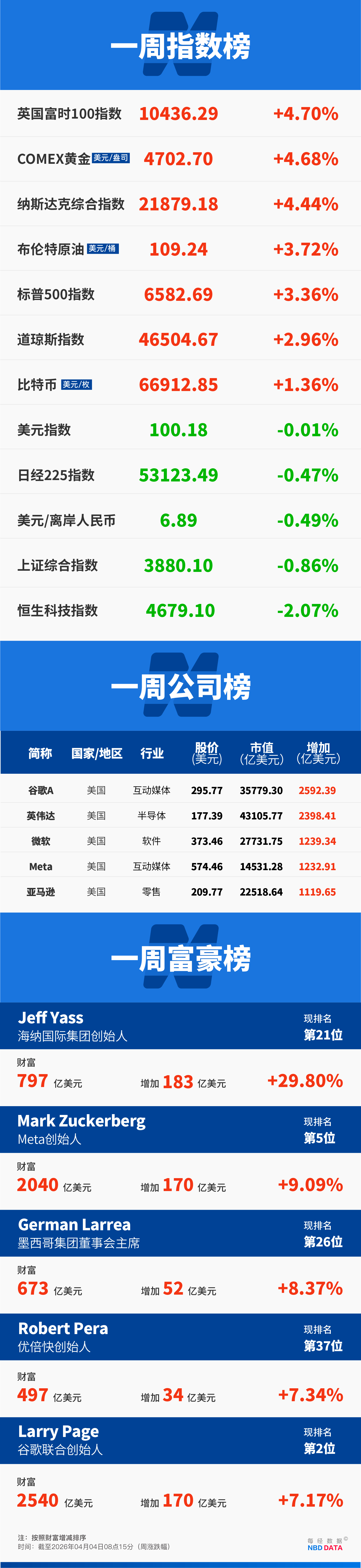 标普500指数本周累涨3.36%,报6582.69点。道指本周累计上涨2.96%(1338点),报46504.67点。纳指本周累涨3.95%,报24045.532点。