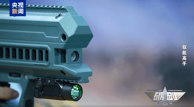 记者庄晓莹:给我最大的感受就是在射击时它几乎没有什么后坐力,射频是非常快的,按照射频每分钟可以发射一两千发的弹丸,和传统的枪械相比,它的噪声也比较小,隐蔽性高,可以说是一型非致命打击的利器。