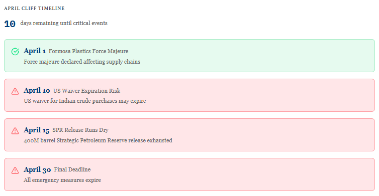 就能源市场的未来而言,ProfitGate Capital Services LLP创始人Nakul Sarda正在追踪以下指标的组合:(i)航运保险保费——假设在达到“警报解除”状态时保险公司会下调价格;(ii)实时船只过境监控;(iii) 迪拜与布伦特原油之间的价差;(iv)追踪其所谓的“四月中旬悬崖点”。