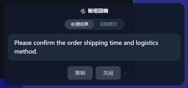 秘塔回响内置超 50 种语言与方言的翻译能力,支持「边说边翻译」的实时交互。