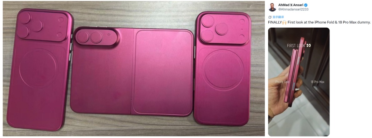 本周Sonny Dickson、AhMadAnsari等多位科技爆料者均发布了一系列他们声称为iPhone Fold机模(供配件厂商生产手机壳等组件的模型)的图片和视频。