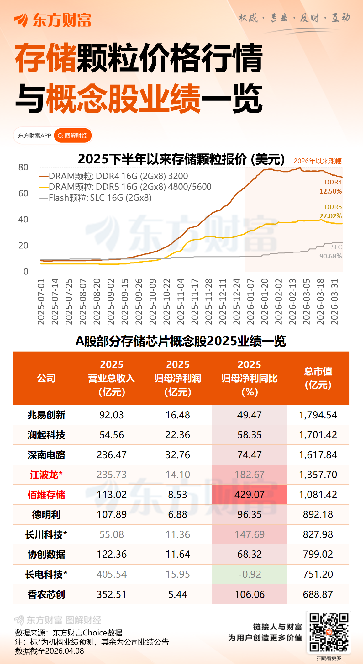 截至4月8日收盘,佰维存储股价报229.68元/股,总市值为1081亿元。
