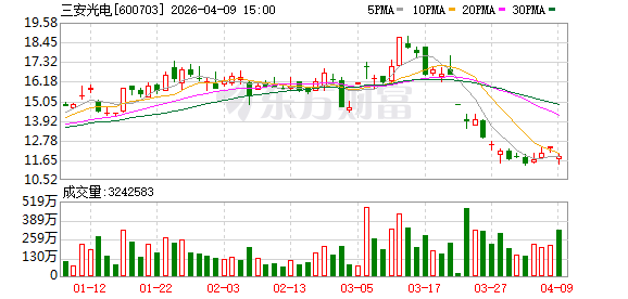4月8日,三安光电涨3.24%至12.41元/股,市值为619.1亿元。