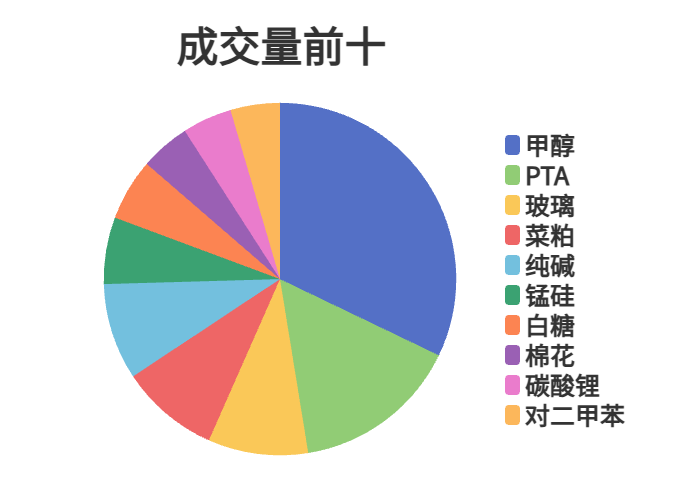 市场成交量前十和持仓量前十如下图所示: