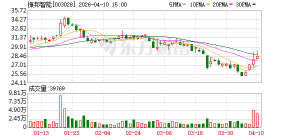 二级市场方面,振邦智能股价今日逆势上涨3.37%,近5个交易日涨幅为4.33%。