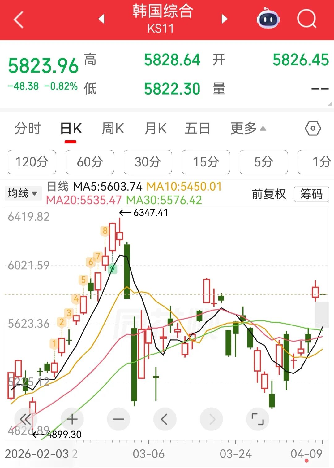 4月9日,日韩股市低开,日经225指数开盘下跌0.19%,报56199.86点;韩国KOSPI指数跌0.78%,报5826.45点。三星电子跌2.14%,SK海力士跌2.03%。