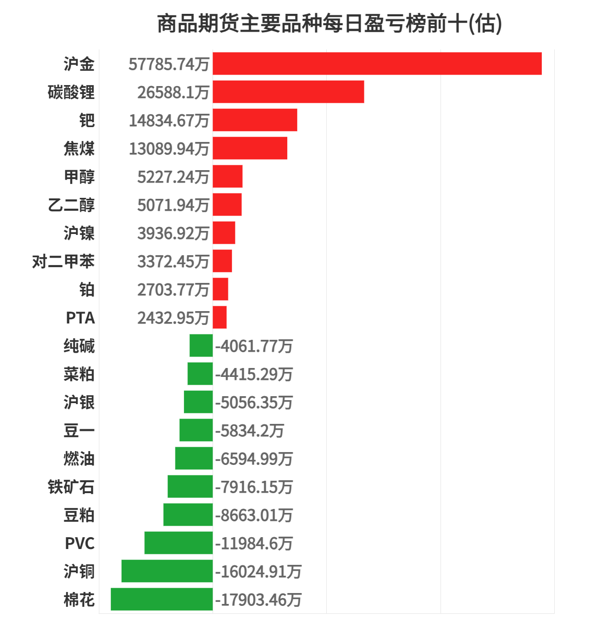 今日商品期货上榜机构席位中沪金盈利第一,为57785.74万元。