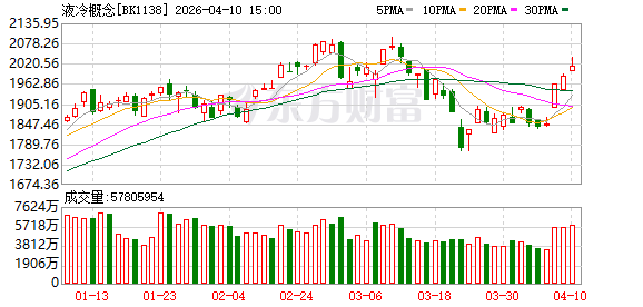 据证券时报·数据宝统计,A股市场液冷产业链概念股接近50只。截至4月10日,13只概念股今年以来涨幅超过20%,其中6股累计涨幅超过30%,包括申菱环境、光环新网、鼎通科技、鸿富瀚等。