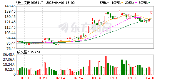 受业绩提振,4月10日德业股份股价直线涨停,收于139.6元/股,总市值升至1269.43亿元。