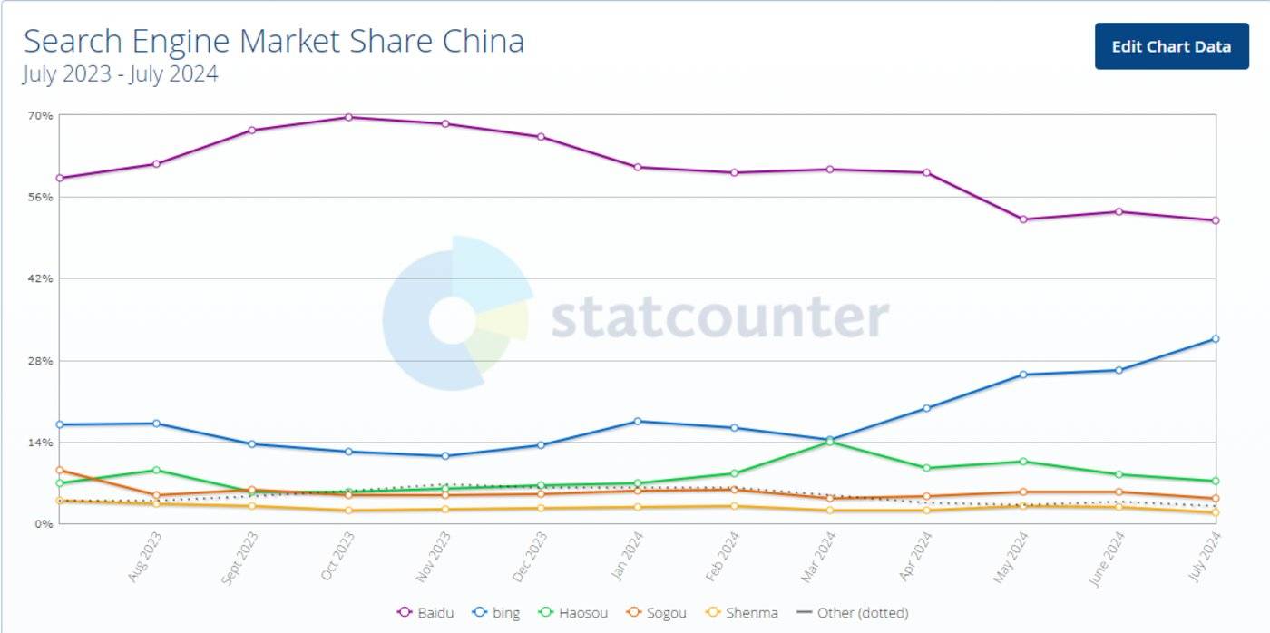 而根据国外数据机构statcounter数据,在PC端,百度的渗透率在最近的一年内出现了下滑。此前,百度已不再是中国第一大桌面搜索引擎 这一消息就曾登上热搜。