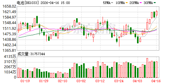 4月16日早盘,电池板块震荡走高,圣阳股份、科达利、龙蟠科技强势封板,天华新能、鹏辉能源涨超10%,宁德时代一度大涨6%,总市值突破2万亿大关,其H股亦大涨超9%;震裕科技、德新科技、雄韬股份等多股跟涨。