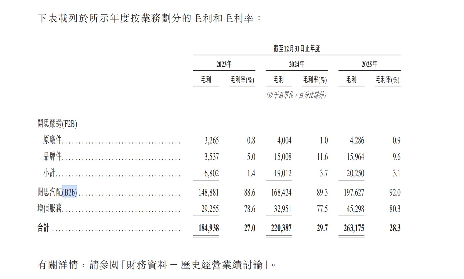 深入拆解财务数据可以发现,贡献了超七成收入的“开思严选”自营业务,2025年的毛利率仅有3.1%,其中原厂件产品的毛利率甚至低至0.9%。这种“近乎赔本赚吆喝”的模式,折射出产业互联网在深入供应链底层时的被动。