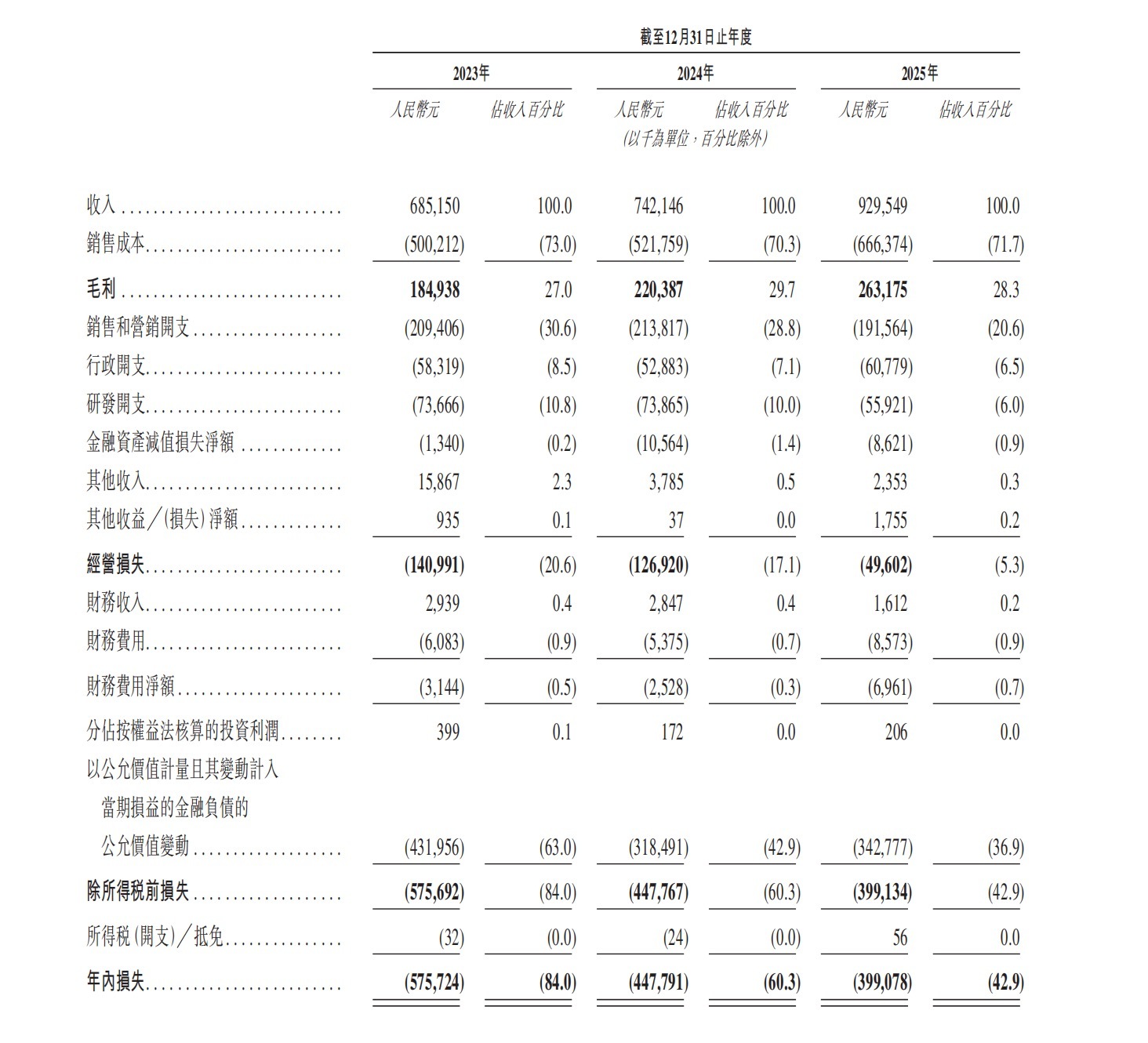 招股书显示,2023年至2025年(以下简称报告期内),开思时代的营收分别为6.85亿元、7.42亿元和9.30亿元,增长速度虽在2025年跃升至25.3%,但伴随而来的亏损金额也不小。报告期内,开思时代分别亏损5.75亿元、4.48亿元、4.00亿元,3年累计亏损14.23亿元。