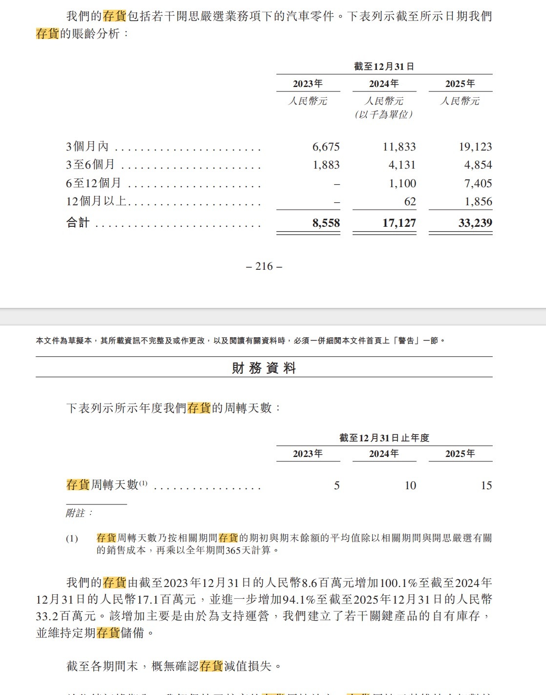 为了建立竞争壁垒,开思时代不得不从早期的信息撮合走向“严选”类的“重交易”,试图通过自营模式放大收入体量,建立若干关键产品的自有库存并维持定期存货储备,但这直接导致资金占用与运营复杂度飙升。公司存货规模从2023年的856万元激增至2025年的3324万元,经营性现金流在报告期内也未能转正。