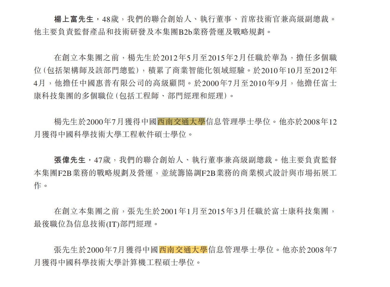 创始人、董事长兼首席执行官江永兴,现年47岁,曾在华为工作15年,负责过战略规划与管理,最后职位为移动传输产品线总经理。而与他并肩作战的联合创始人、CTO(首席技术官)杨上富,不仅是江永兴在华为的旧识,两人更是同年同月离职创业。此外,另一位联合创始人、执行董事张伟与杨上富不仅是西南交通大学的同校同专业同窗、中科大硕士校友,两人还在富士康共事多年。3人于2015年联手创立开思时代,将科技行业的数字化经验带入传统汽配流通领域。