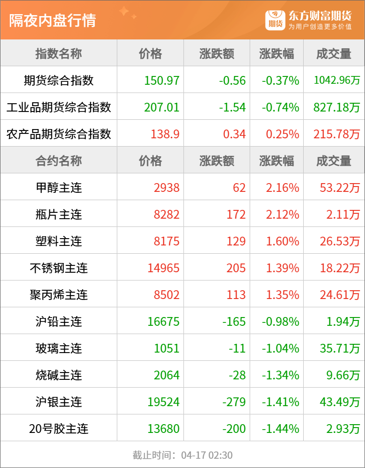 铁矿石:据Mysteel,4月16日全国主港铁矿累计成交96.8万吨,环比上涨5.68%;本月平均每日成交92.4万吨,环比上涨24.86%。当天远期现货累计成交81.5万吨(8笔),环比下跌8.94%,其中矿山成交量为31.5万吨。(我的钢铁网)