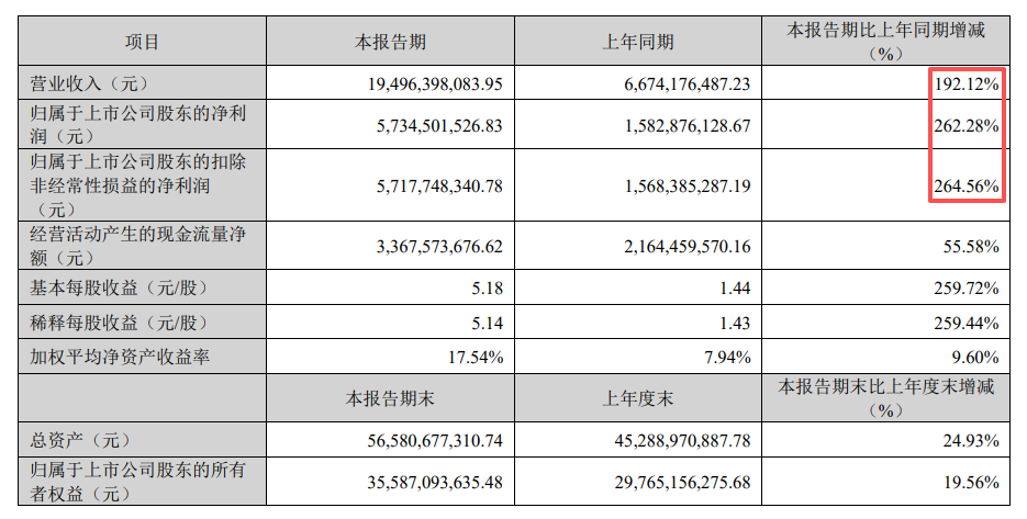 财报显示,中际旭创一季度实现营收194.96亿元,同比增长192.12%,环比增长47.31%;实现归母净利润57.35亿元,同比大增262.28%,环比增长56.45%。