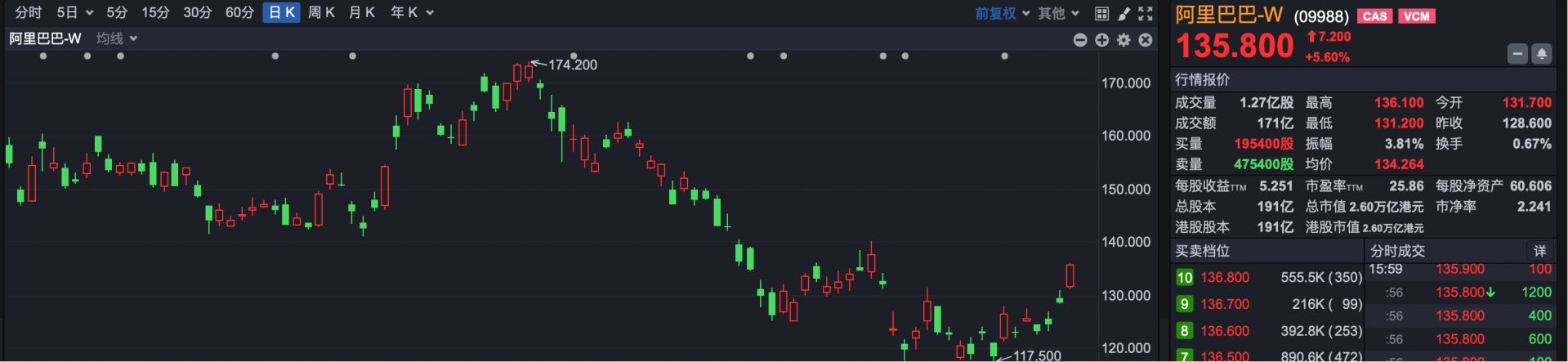 截至收盘,恒生指数报26394.26点,上涨446.94点,涨幅1.72%。