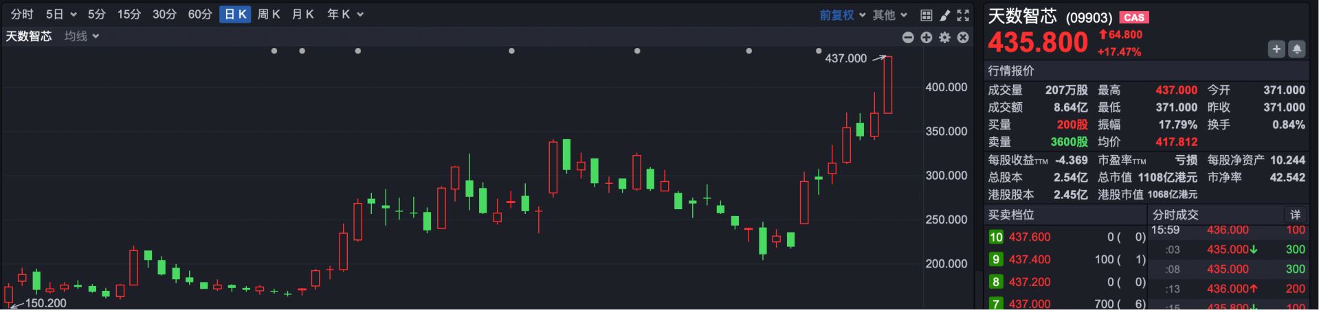 芯片股表现亮眼,天数智芯涨超17%,兆易创新涨超13%,壁仞科技涨超26%。