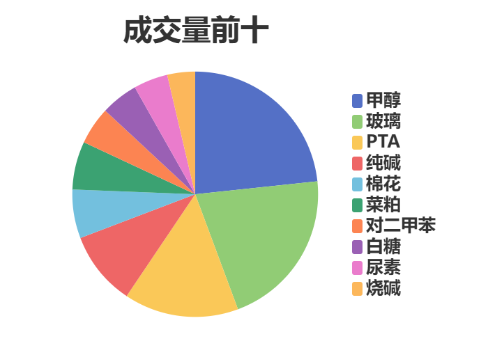市场成交量前十和持仓量前十如下图所示: