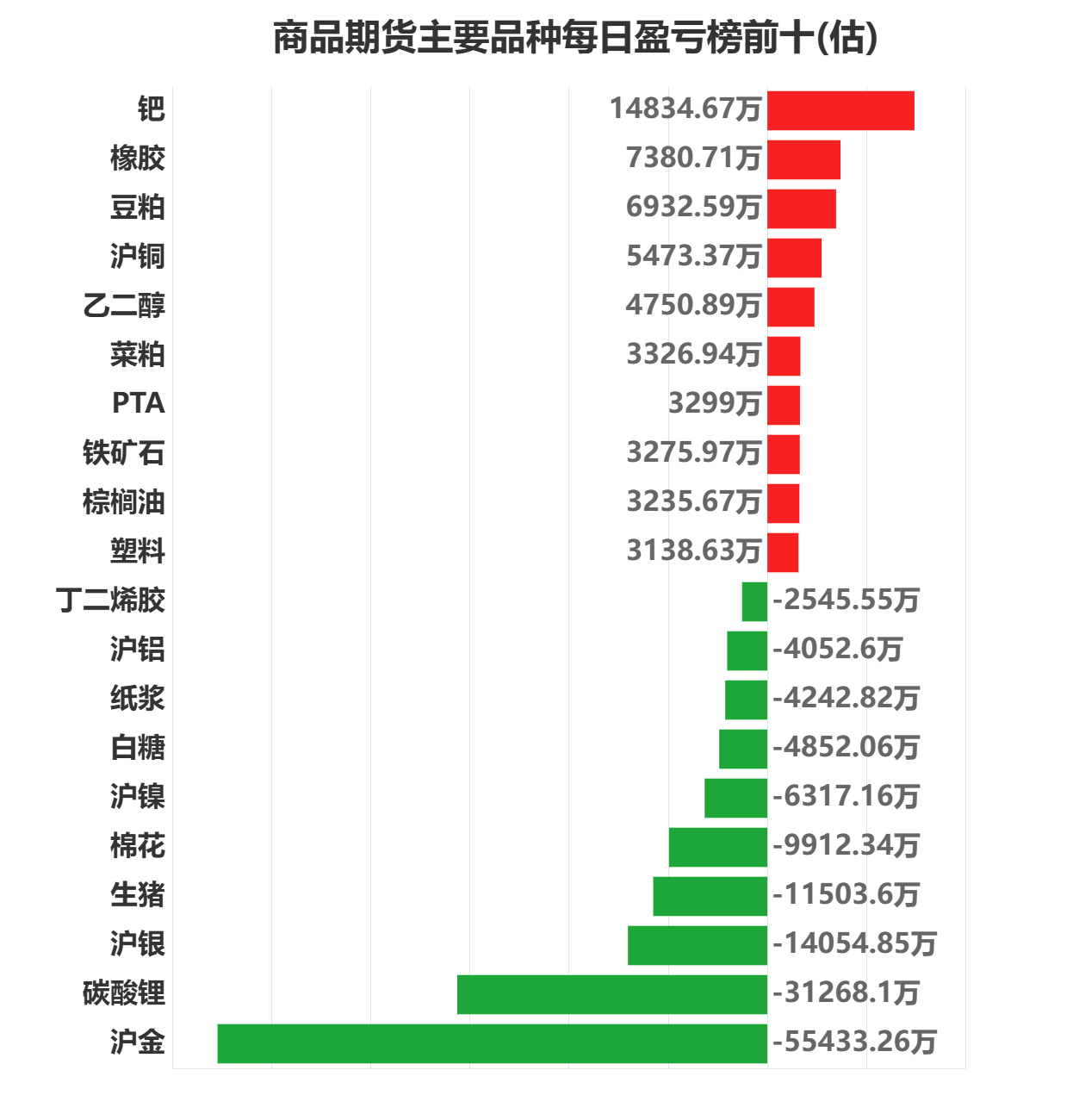 今日商品期货上榜机构席位中钯盈利第一,为14834.67万元。