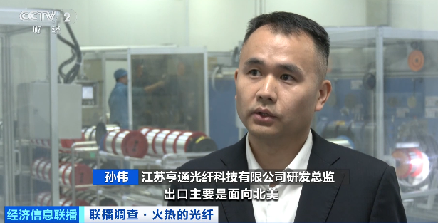江苏亨通光纤科技有限公司研发总监孙伟:出口主要是面向北美,还有东南亚等地区,现在的在手订单很充足,排产已经排到明年一季度。