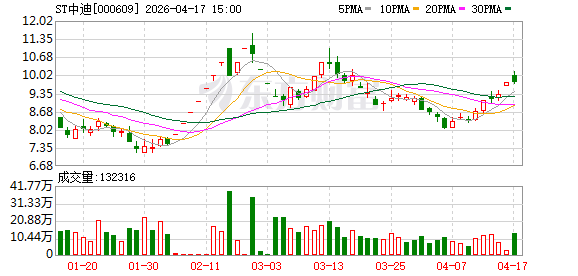 Wind数据显示,4月17日,ST中迪股价收盘报9.76元/股,最新市值为29亿元。今年2月,公司股价曾大幅上涨,一度走出“7连板”。
