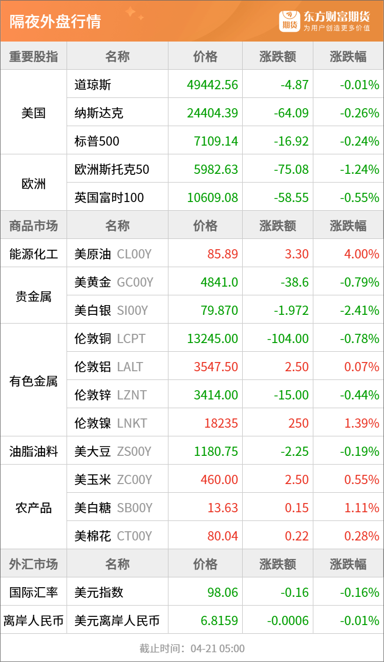 隔夜行情
