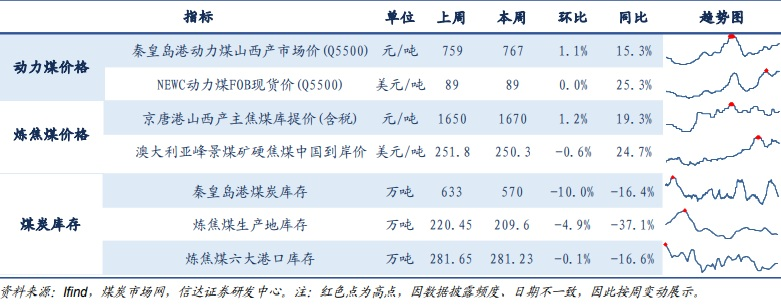 信达证券认为,当前煤炭日耗转强库存偏低,煤价上行通道渐启。具体来讲,近期沿海8省日耗明显回升,终端电厂库存持续去化,可用天数已处于较低水平。展望后市,在终端电厂及环渤海港口库存持续去化背景下,部分电厂补库需求有望提前释放,我们预计煤价有望呈现震荡并逐步上行态势。若后期水电出力不及预期、厄尔尼诺天气强度加高,煤价上行空间或将进一步打开。