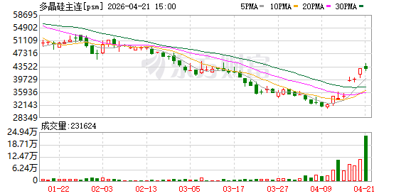 4月20日,多晶硅期货延续上周的涨势,多个合约触及涨停,主力合约报收42955元/吨。
