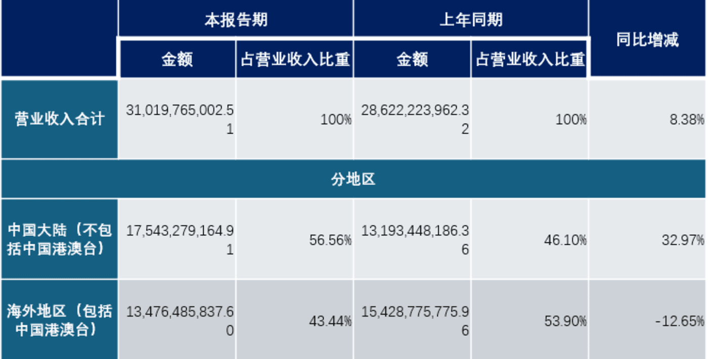 (1)中报显示:今年上半年阳光电源海外地区的营收,较去年同期下降了12.65%。