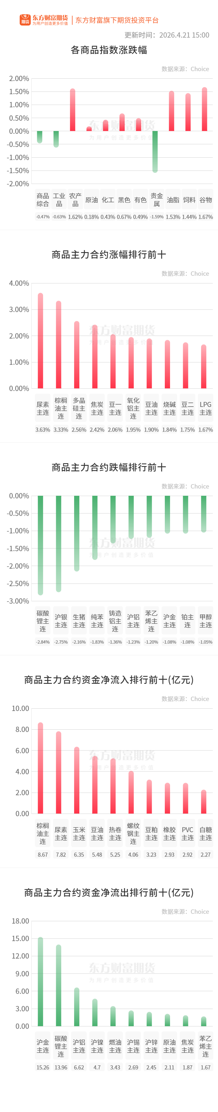 生猪:据农业农村部监测,截至4月21日14:00时,全国农产品批发市场猪肉平均价格为14.79元/公斤,较前一日上升0.6%;鸡蛋平均价格为8.46元/公斤,较前一日下降0.2%。(新华财经)