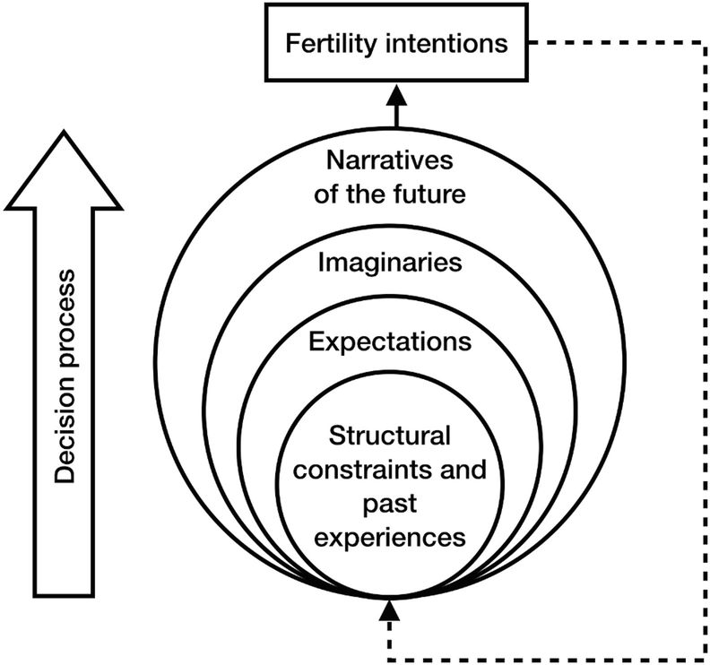 Vignoli等提出的“未来叙事”框架进一步强调了个体对未来看法在生育决策中的重要性。该框架认为,个体对未来的认知是生育决策的关键因素,结构性约束、过往经历、期望、想象和对未来的叙事共同影响生育选择。在个体心理层面,这些因素相互交织,前者影响后者,但后者并不完全受前者的制约。
