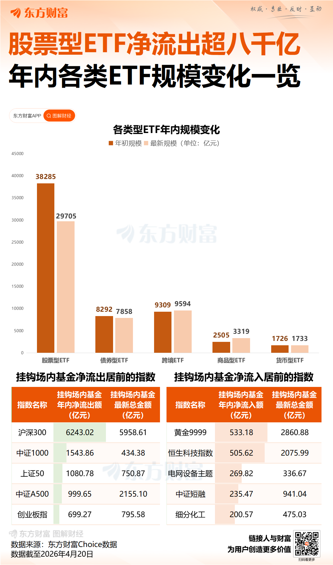 这一轮的净流出早在去年12月已经开始,仅今年以来,宽基ETF就净流出了1.2万亿元,其中,创业板指ETF的累计净流出额达到677.44亿元。