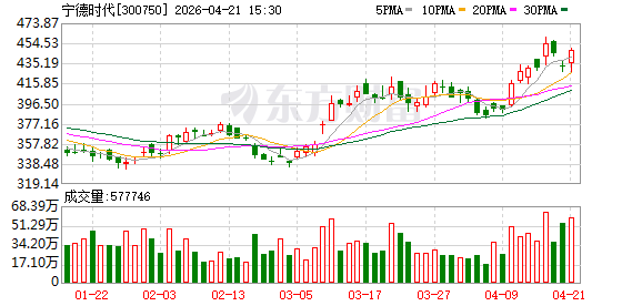 4月20日晚间,宁德时代发布股东询价转让定价情况提示性公告,经向机构投资者询价,上述股权转让初步确定转让价格为410.34元/股。此价格相比宁德时代最新收盘价(432.5元/股)折价约5%。