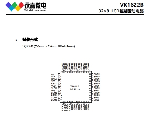 VK1622 2.4V~5.2V 32seg*8com 偏置电压 1/4 LQFP44/LQFP48/LQFP52/LQFP64/QFP64;DICE/DIE 裸片 (绑定 COB);COG(绑定玻璃) 省电模式