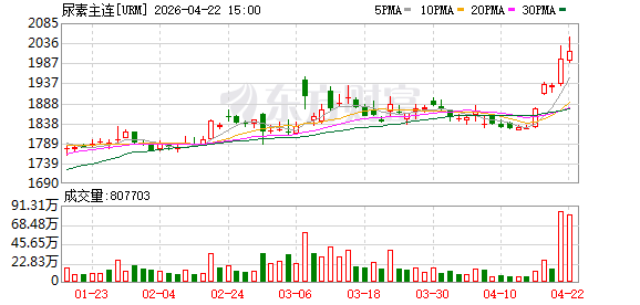 昨日,国内尿素期货价格持续上涨,主力合约盘中一度突破2000元/吨整数关口,最高触及2029元/吨,创2024年8月以来新高。截至收盘,主力合约报1996元/吨,上涨3.63%,市场情绪显著回暖。