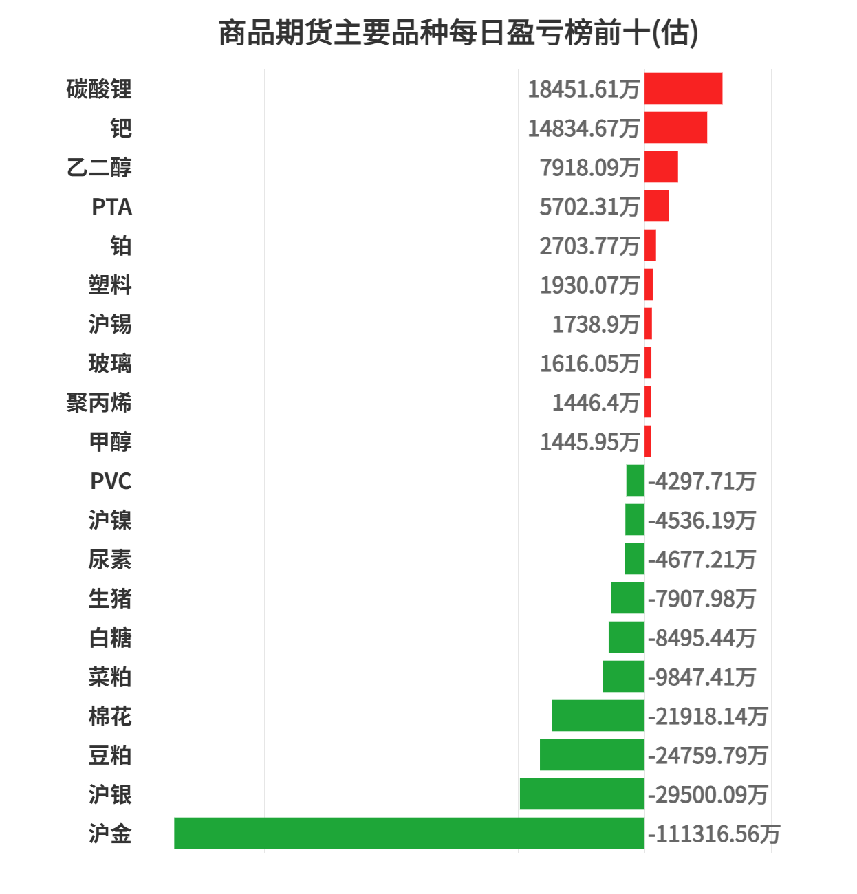 今日商品期货上榜机构席位中碳酸锂盈利第一,为18451.61万元。