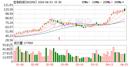 近年来电子布价格出现大幅飙升走势。申万宏源证券研报显示,根据卓创资讯,今年一季度玻纤电子布7628型号均价5.2元/米,环比上涨0.9元/米,同比上涨1.3元/米,普通电子纱价格同步上涨。宏和科技股价也持续飙升。该股2024年低点不足5元/股,今日(4月23日)午间收盘价为105.2元/股大关,累计涨幅约20倍。