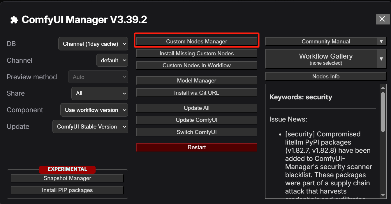 - 下载 ComfyUI-Manager:https://github.com/ltdrdata/ComfyUI-Manager