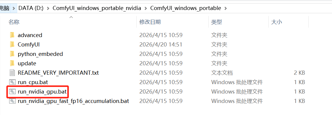 - 进入解压后的文件夹(里面会有 ComfyUI_windows_portable 等文件夹)。
