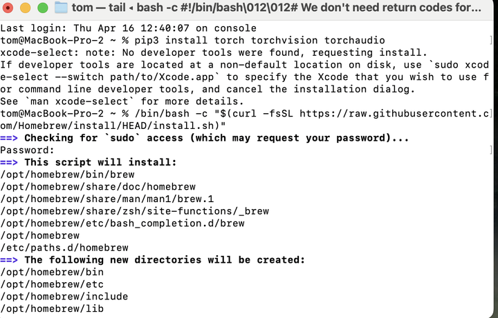 - 过程可能需要几分钟,会让你输入电脑登录密码(输入时屏幕不会显示,输入完直接按回车)。