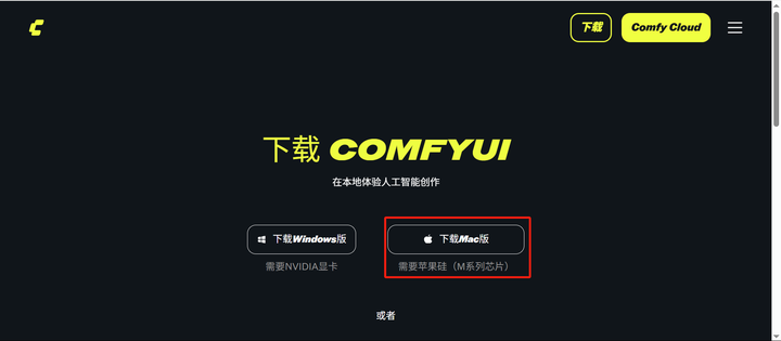 - 在https://www.comfy.org/download 下载 Mac 版本