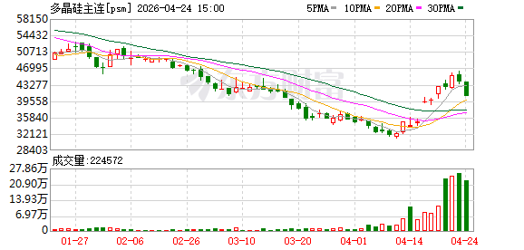 在前期大幅上涨后,近期多晶硅期货定价重回“弱现实”逻辑。4月24日,多晶硅期货主力合约PS2606跌停,报40655元/吨。