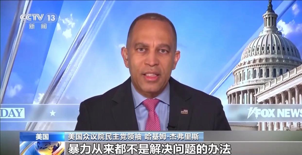 美国众议院民主党领袖哈基姆·杰弗里斯:毫无疑问的是,暴力从来都不是解决问题的办法。无论针对的是右翼、左翼还是中间派,我们之间存在的问题应该共同解决。