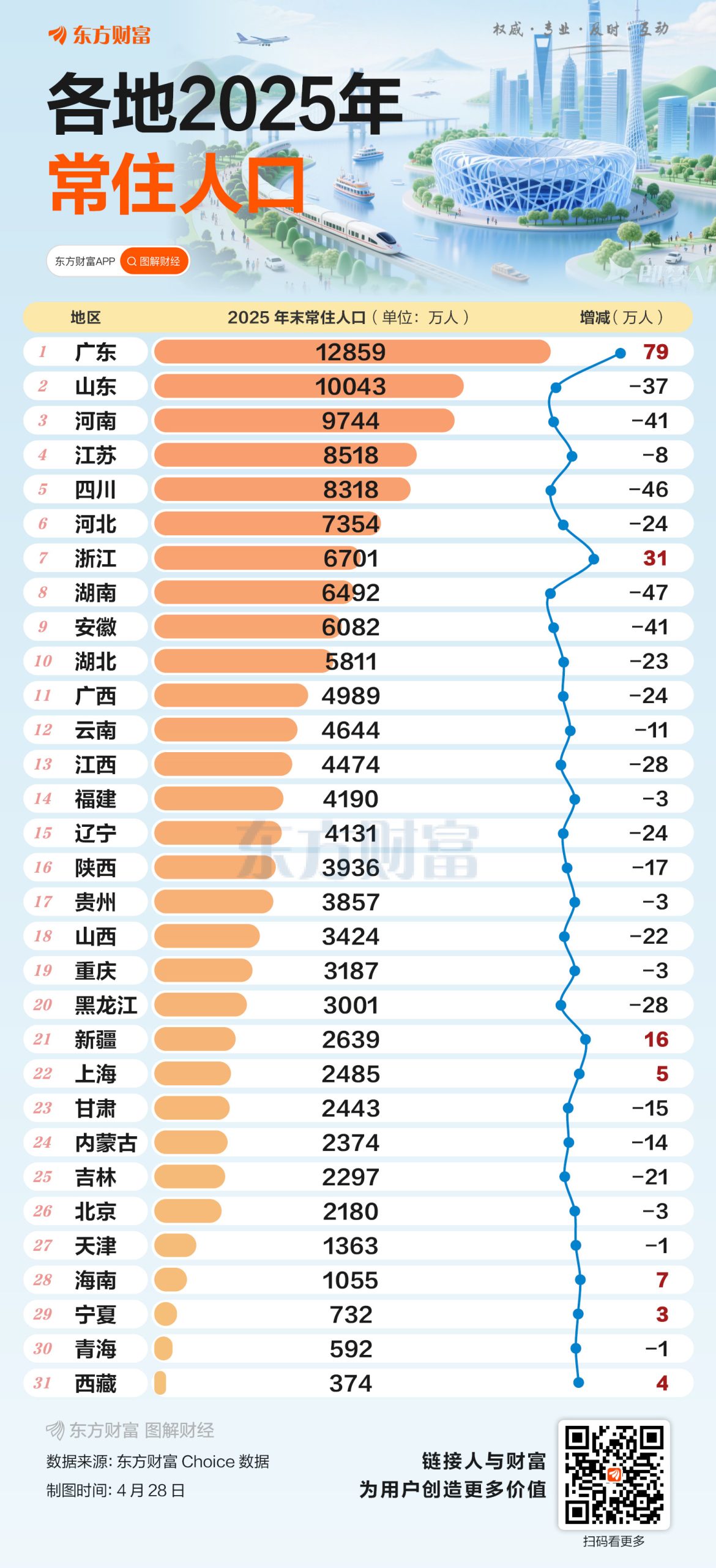 4月27日,吉林发布2025年统计公报,数据显示,该年末全省总人口为2296.69万人,较上年末减少近21万人。至此,全国31省市2025年末常住人口数据已全部披露完毕。