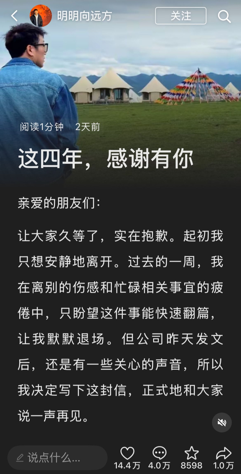 “我意识到那个我曾经用力守护的家园,已经不需要我了。”4月25日,东方甄选主播明明在宣布离职的长文中写下这段话。