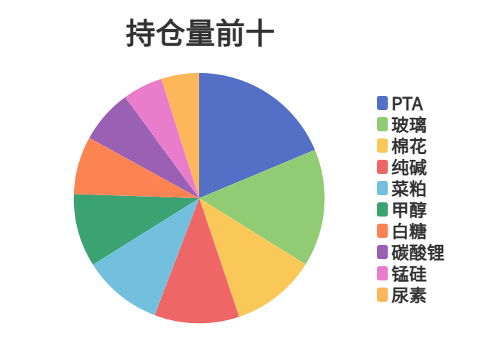 市场成交量前十和持仓量前十如下图所示: